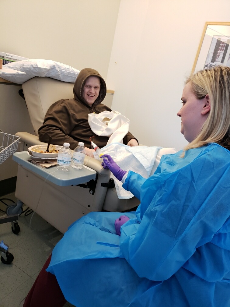 So what does this entail for ya boi? Well, let’s take a step back and look at what the plan was before the FDA was expecting to pull approval on my cancer drug. Originally, the plan was to give me the maximum dose of adriamycin in combination with olara (8 cycles) and then continue getting doses of olara for an undetermined amount of time until the cancer either returns or is deemed to be in remission. Basically a forever plan to ultimately control my cancer forever. Unfortunately, now that they will no longer be able to give olara, that dream is out the window (much like my hopes of ever not being bald). So, if you’ve been following along, you’ll notice the title of this blog says (cycle 8), which means yesterday will be my day of adriamycin ever, which means that now I just won’t be receiving any sort of cancer drugs in the forseen future.